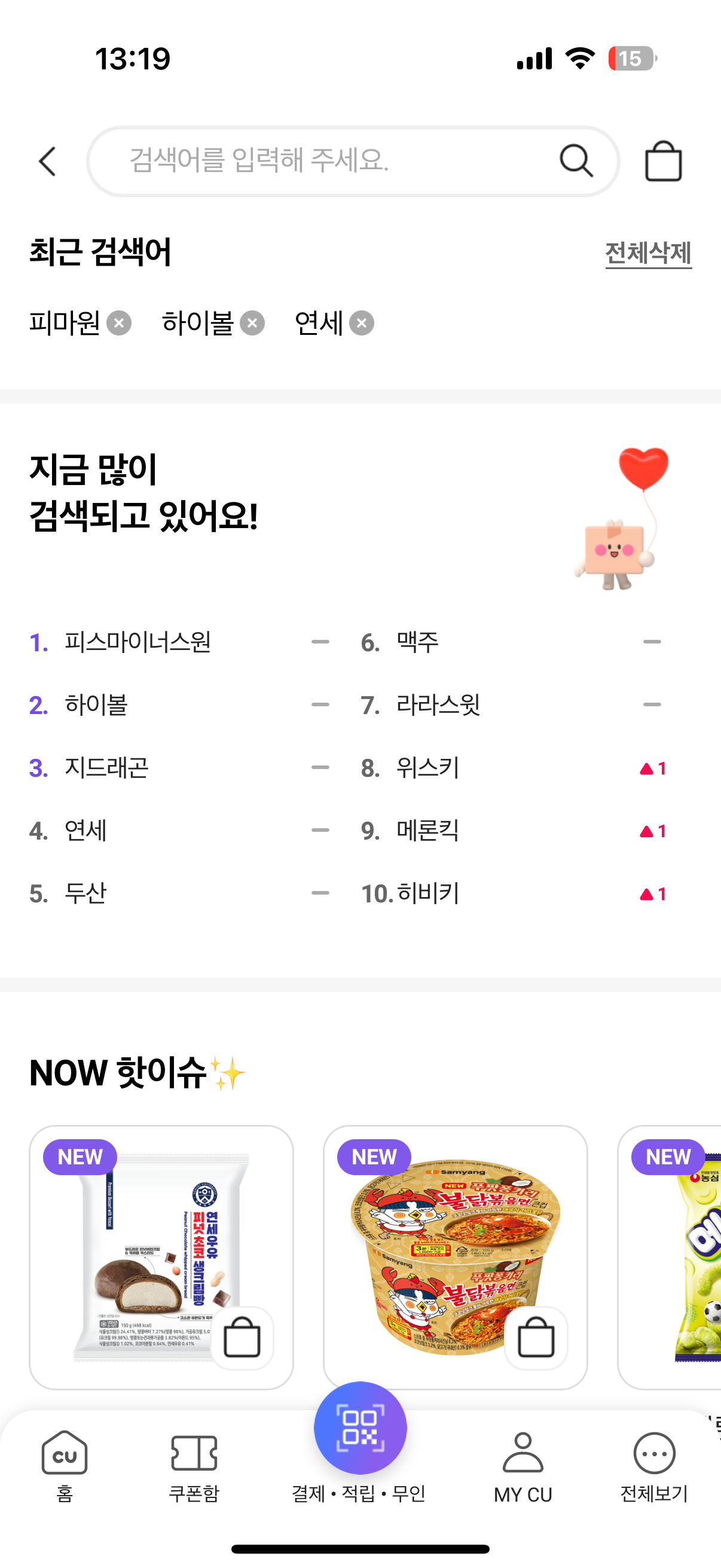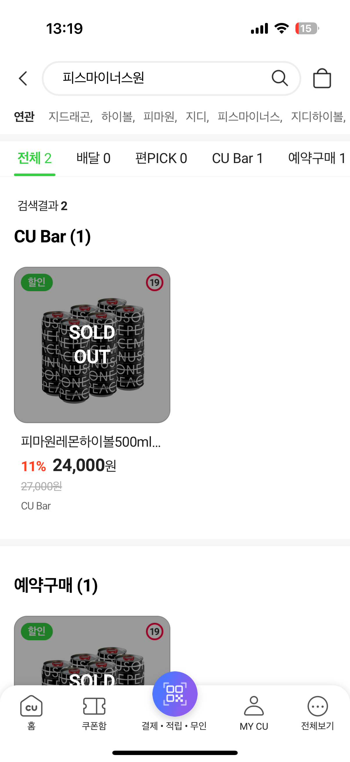 CU 앱에서 피마원 하이볼 재고 확인하는 방법